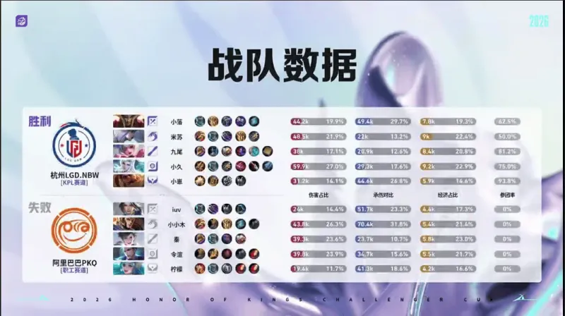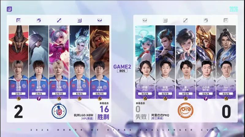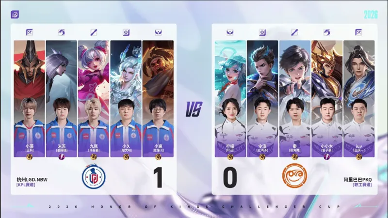 蓝色方:杭州LGD.NBW 红色方:阿里巴巴PKQ